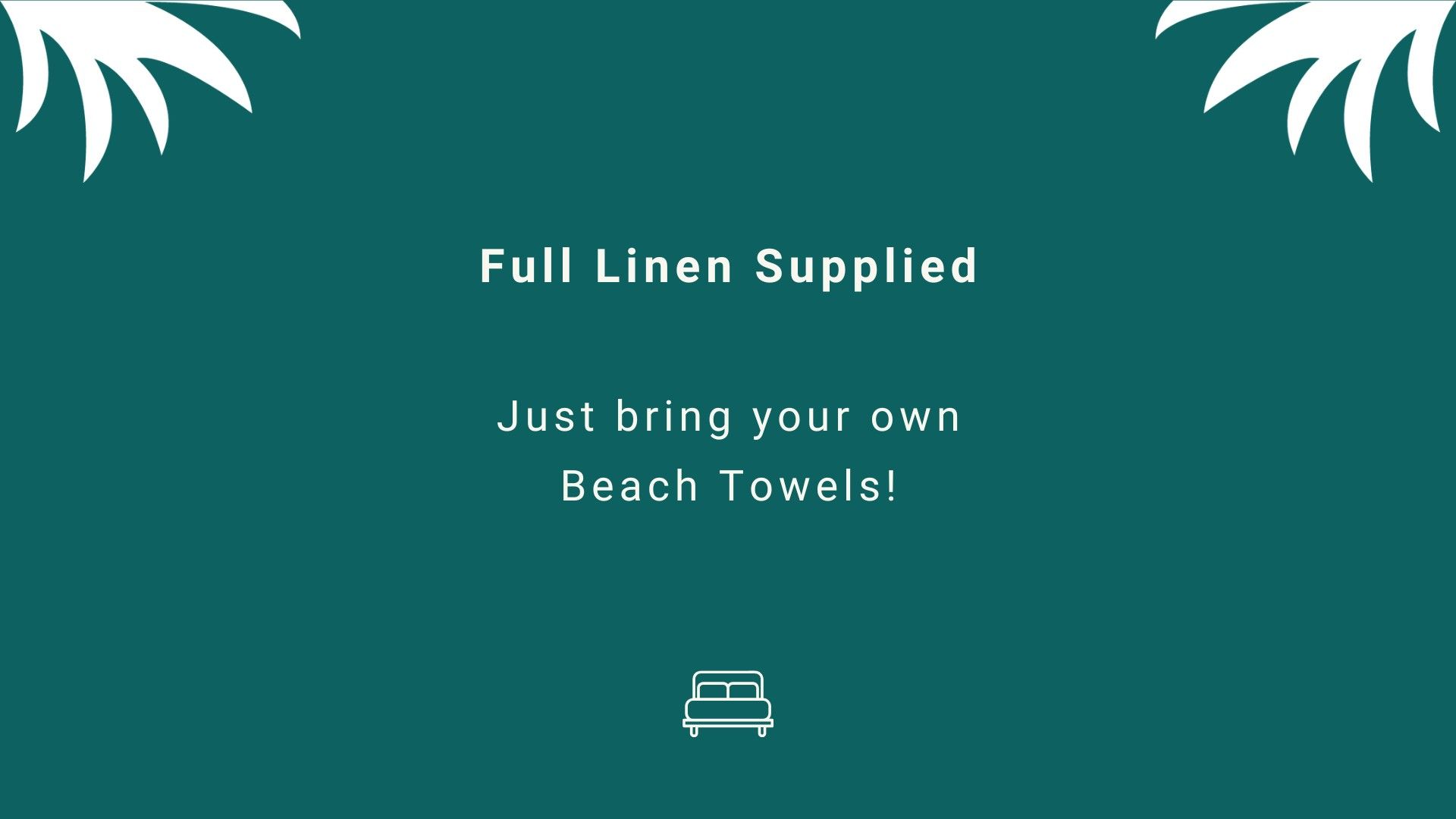 - Full linen supplied - Just bring your own beach towels!