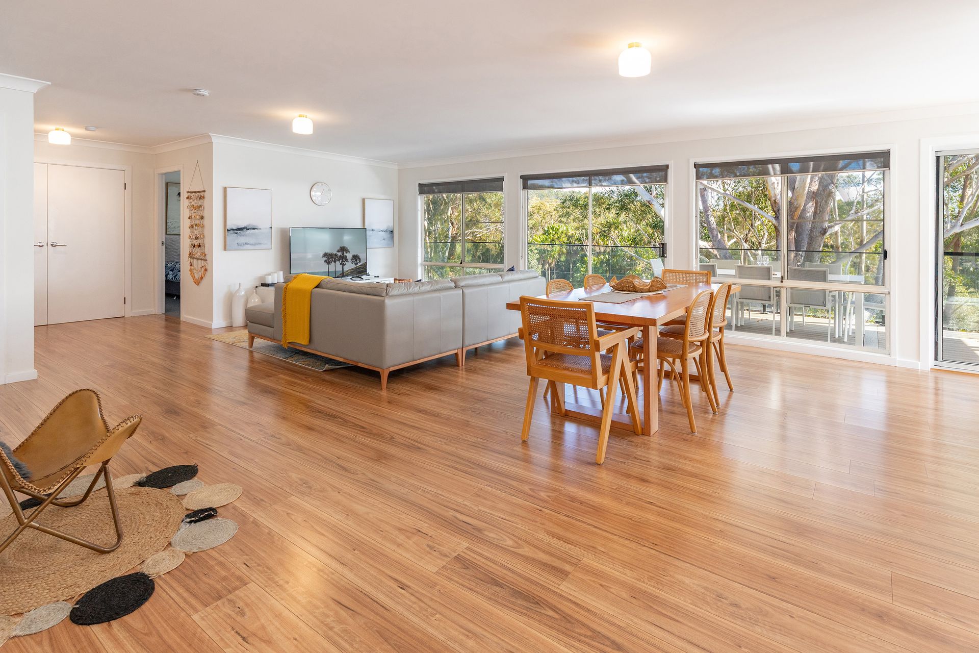 Immerse yourself in the comfort of this single-level home that can accommodate up to 8 guests, complete with three beautifully decorated bedrooms. The master suite boasts of a queen-size bed and its own private ensuite. The second bedroom features a plush queen bed, while the third bedroom hosts a double bed and a single bed.