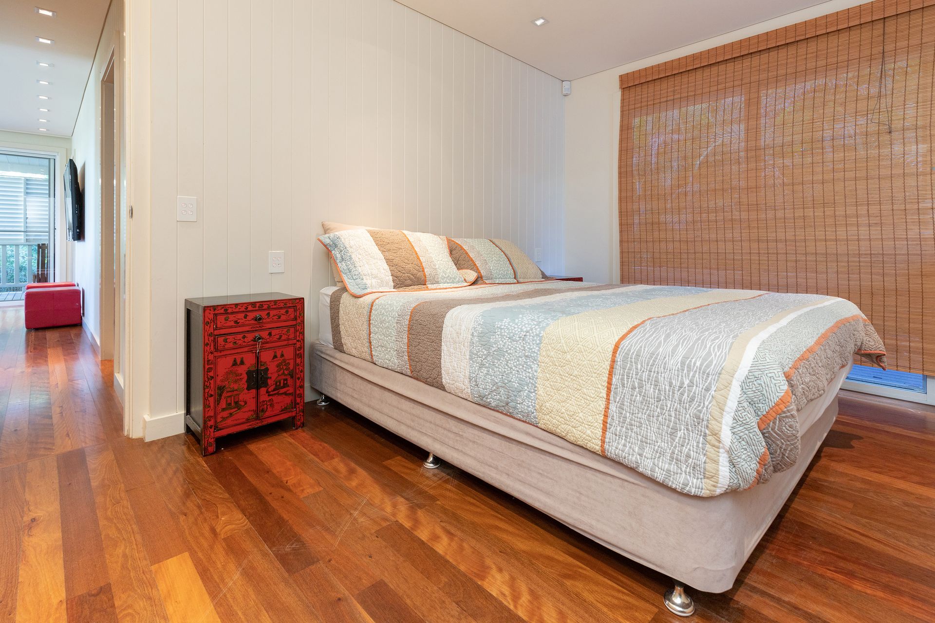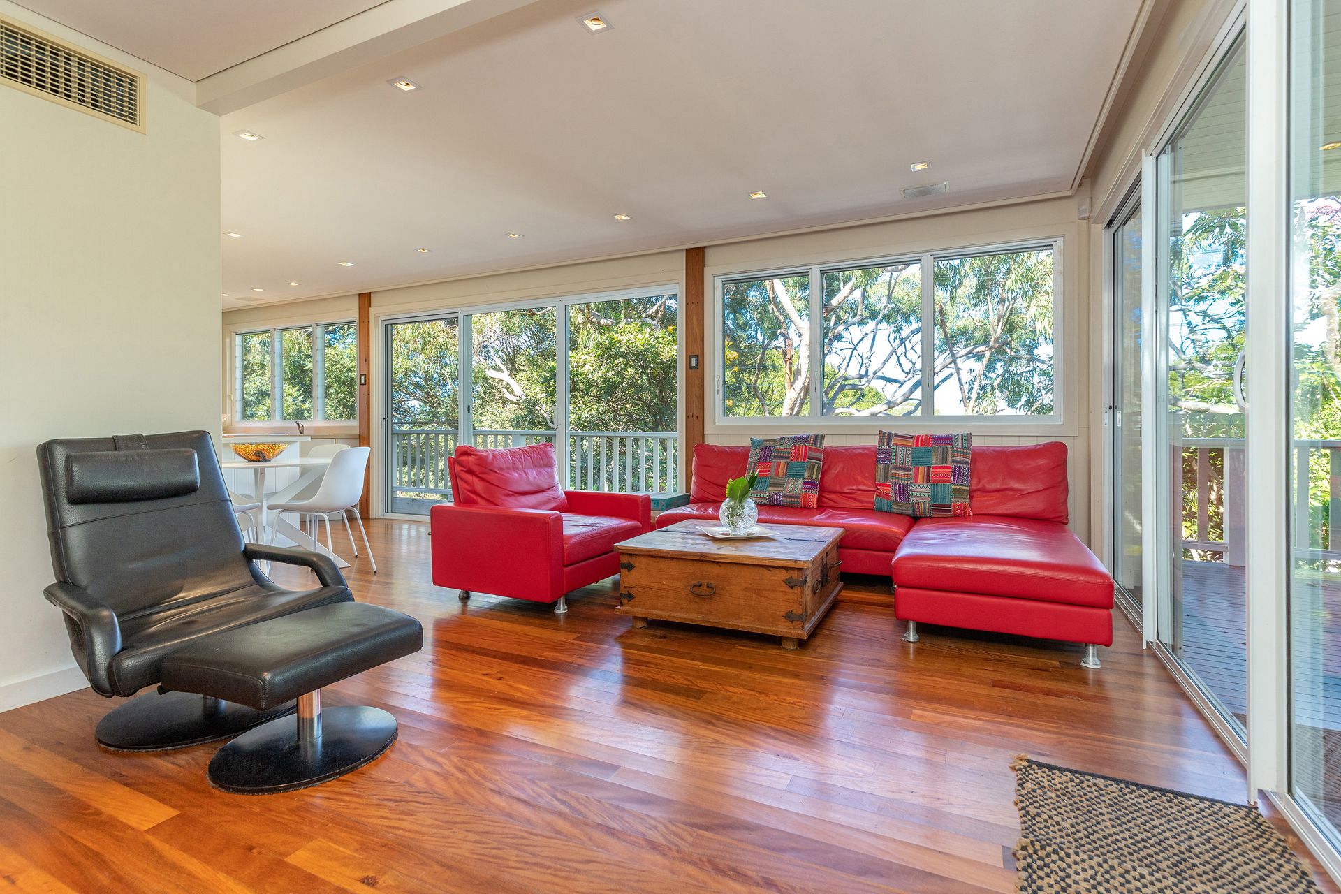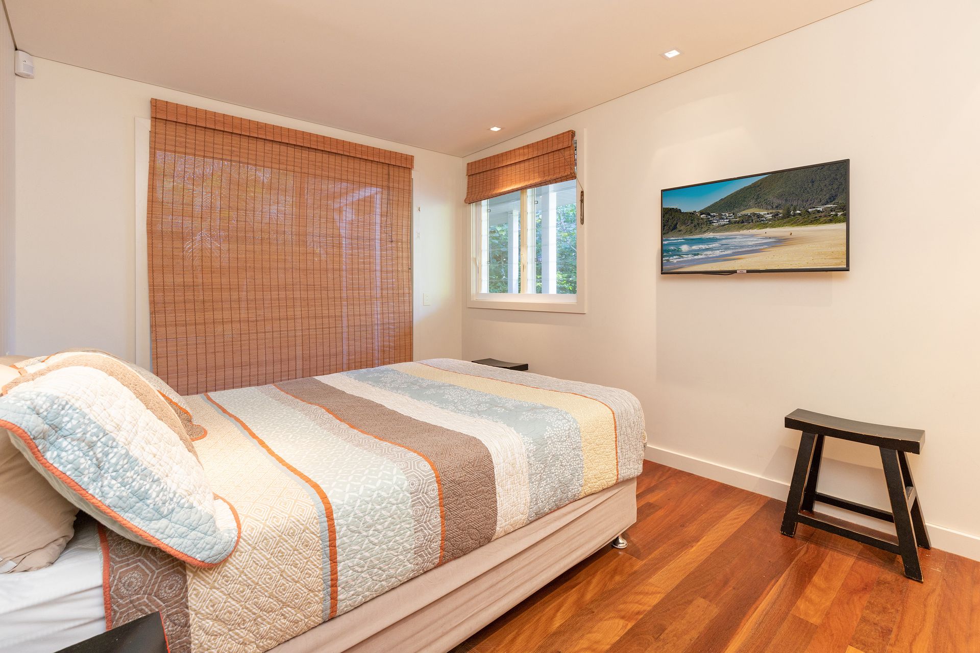 A beach house designed with privacy and seclusion in mind overlooking surrounding gardens and bushlands, nestled amidst the beauty of Blueys Beach. Spend mornings savoring a cup of coffee on the balcony, soak up the sun in the outdoor seating area, or enjoy a barbecue cookout in the lush yard amongst the salty beach air.