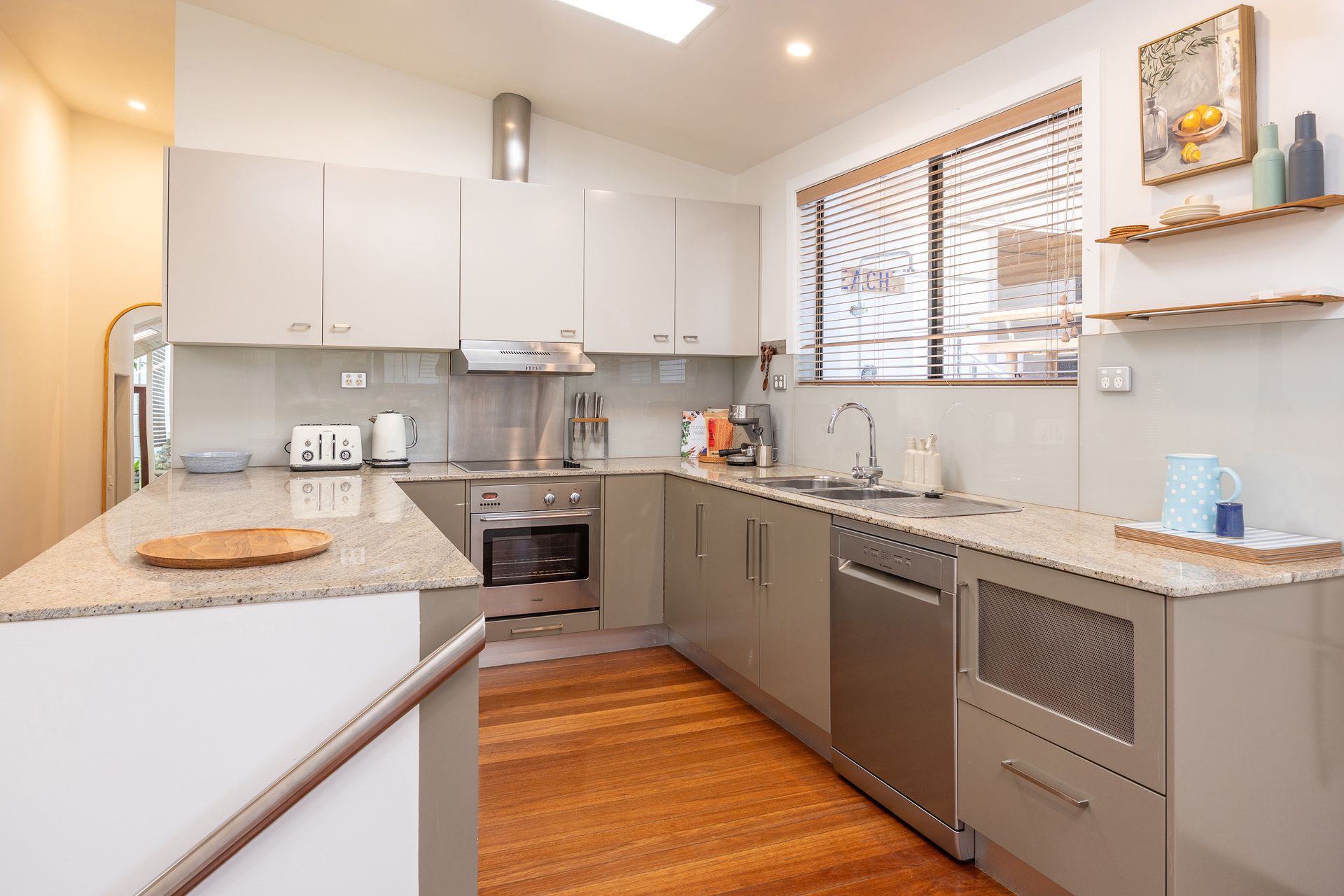 A granite-bench kitchen equipped with a dishwasher