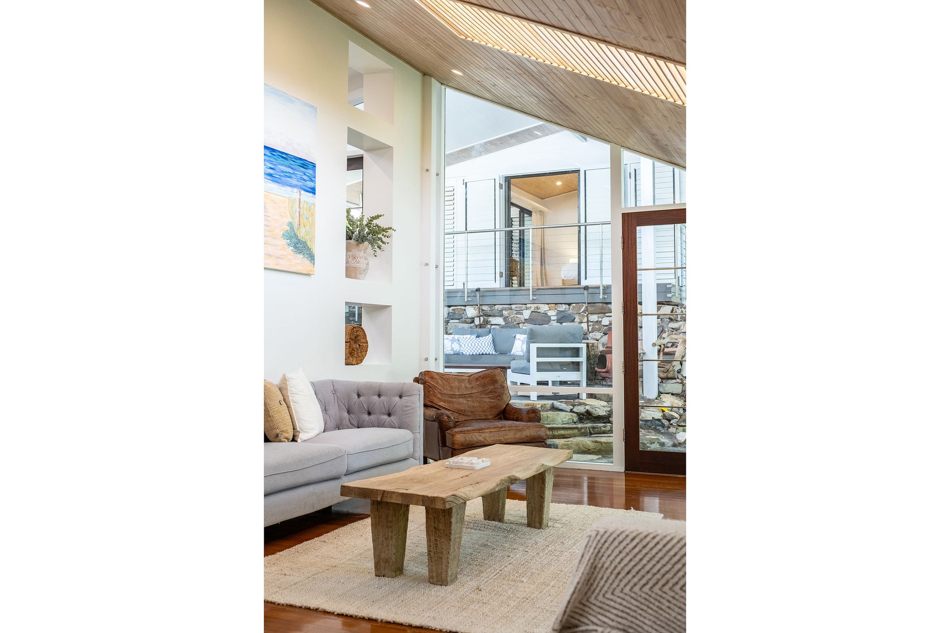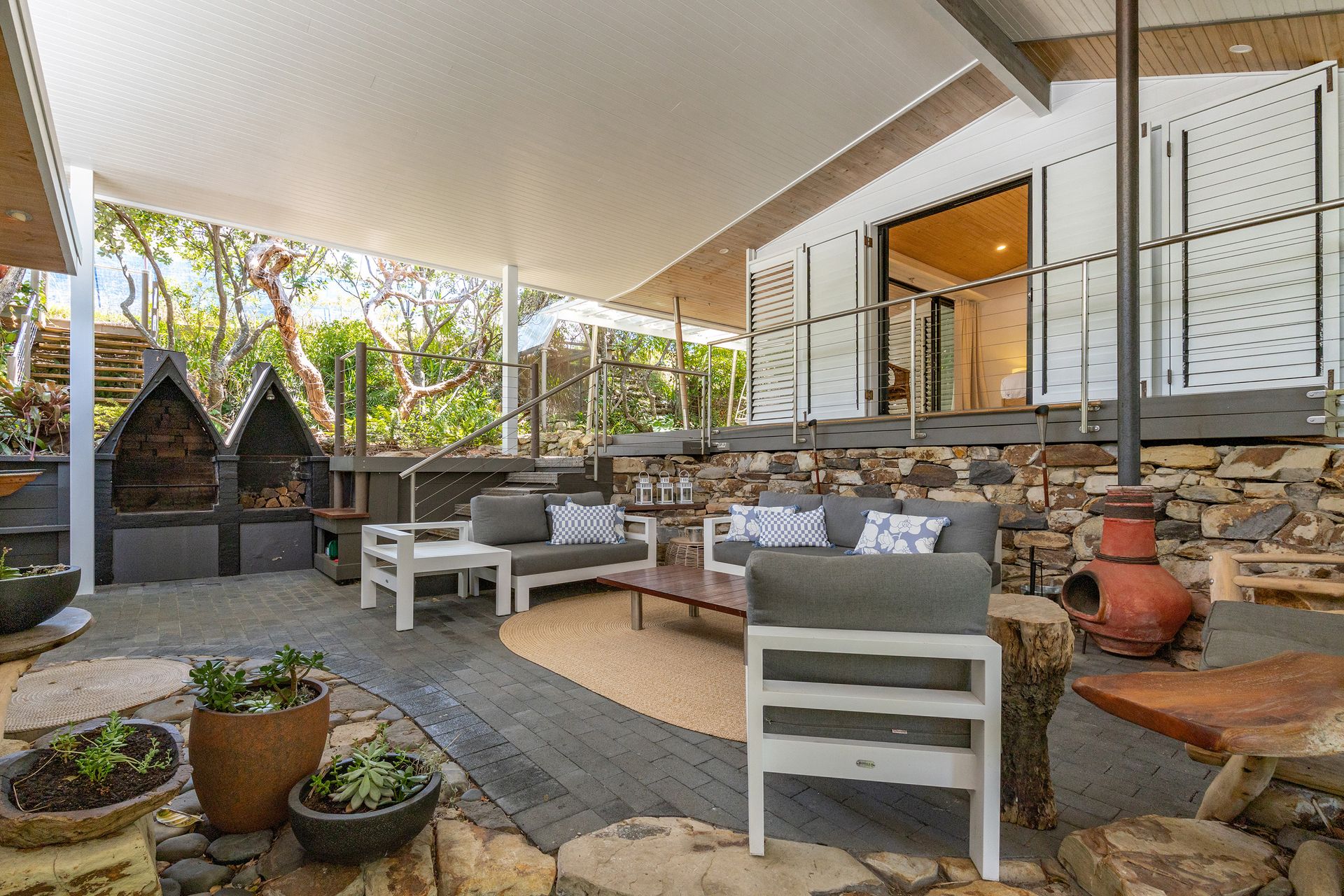 A covered alfresco entertaining area with a built-in BBQ — perfect for long holiday lunches