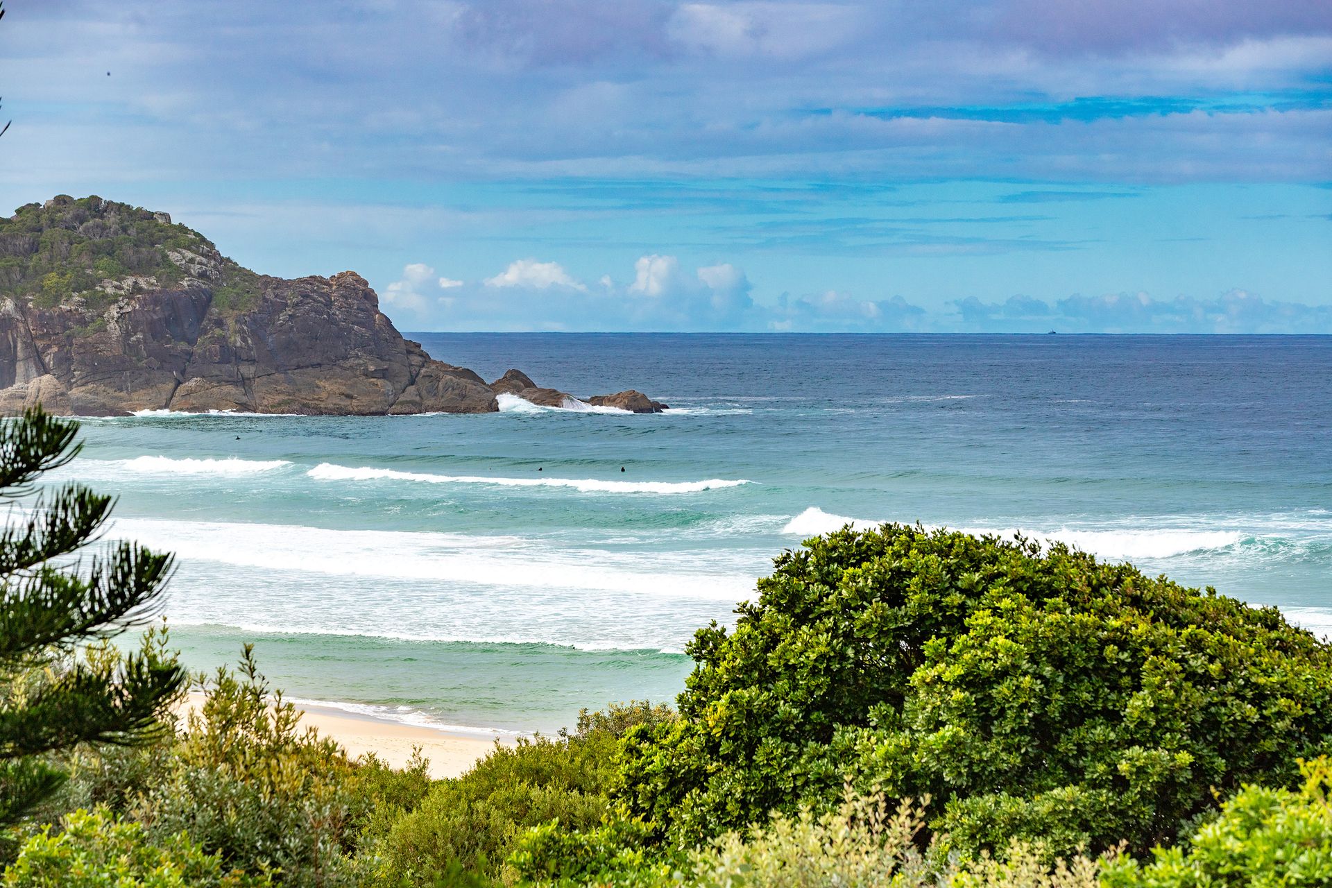 Famed for being the beach which guarantees a good wave, Blueys is undoubtedly a favourite with surf enthusiasts and those who enjoy a stretch of secluded sand with incredible views. Locals proudly proclaim this to be one of the world’s finest beaches. Offering protected corners for those who want to watch the swell from afar, this lush stretch of coastline is framed by forest-covered headlands and nestled between Sandbar Beach to the south, and Boomerang Beach to the north.