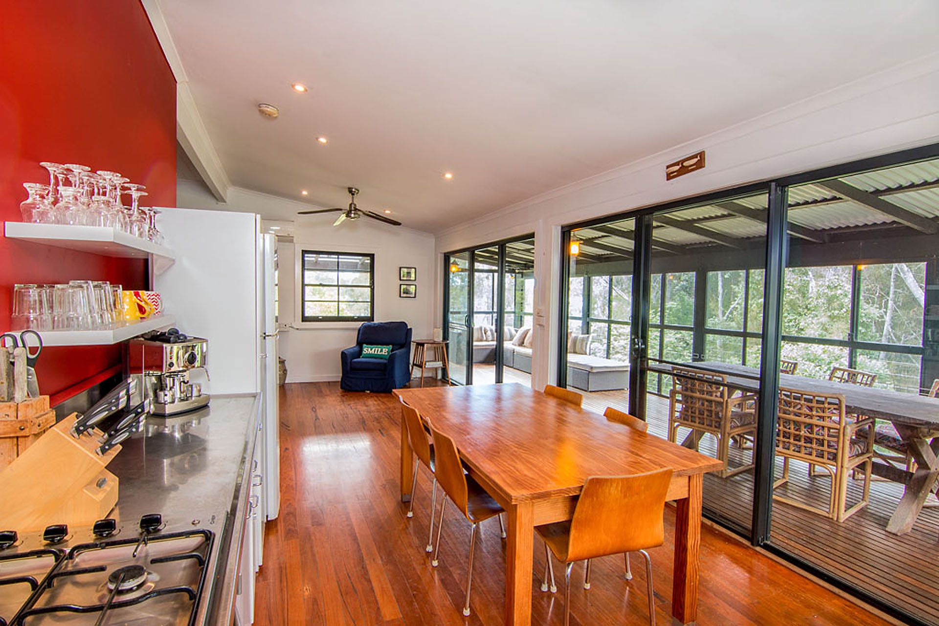 Break free from the stresses of everyday life and experience the beautiful Great Lakes coast with a stay at Tuppy’s. Nestled on the water, it’s so easy to relax and rejuvenate in such a glorious bushland setting. You’ll love the mix of old meets new, with modern touches including reverse cycle air-conditioning and a revamped bathroom and kitchen, blending harmoniously with its classic cottage vibe, including polished floors and cosy fireplace.